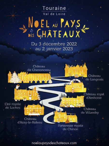 Du samedi 3 décembre 2022 au lundi 2 janvier 2023, sept des plus grands châteaux de la Loire célèbrent l’esprit des fêtes de fin d’année à travers d’exceptionnels parcours de visite, et des animations : c’est le « Noël au pays des châteaux » en Touraine.